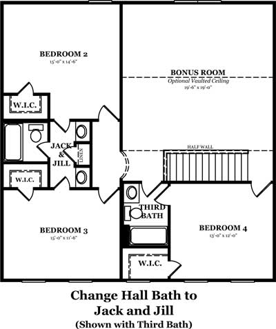 Georgetown Optional Change Hall Bath to Jack & Jill Bath
